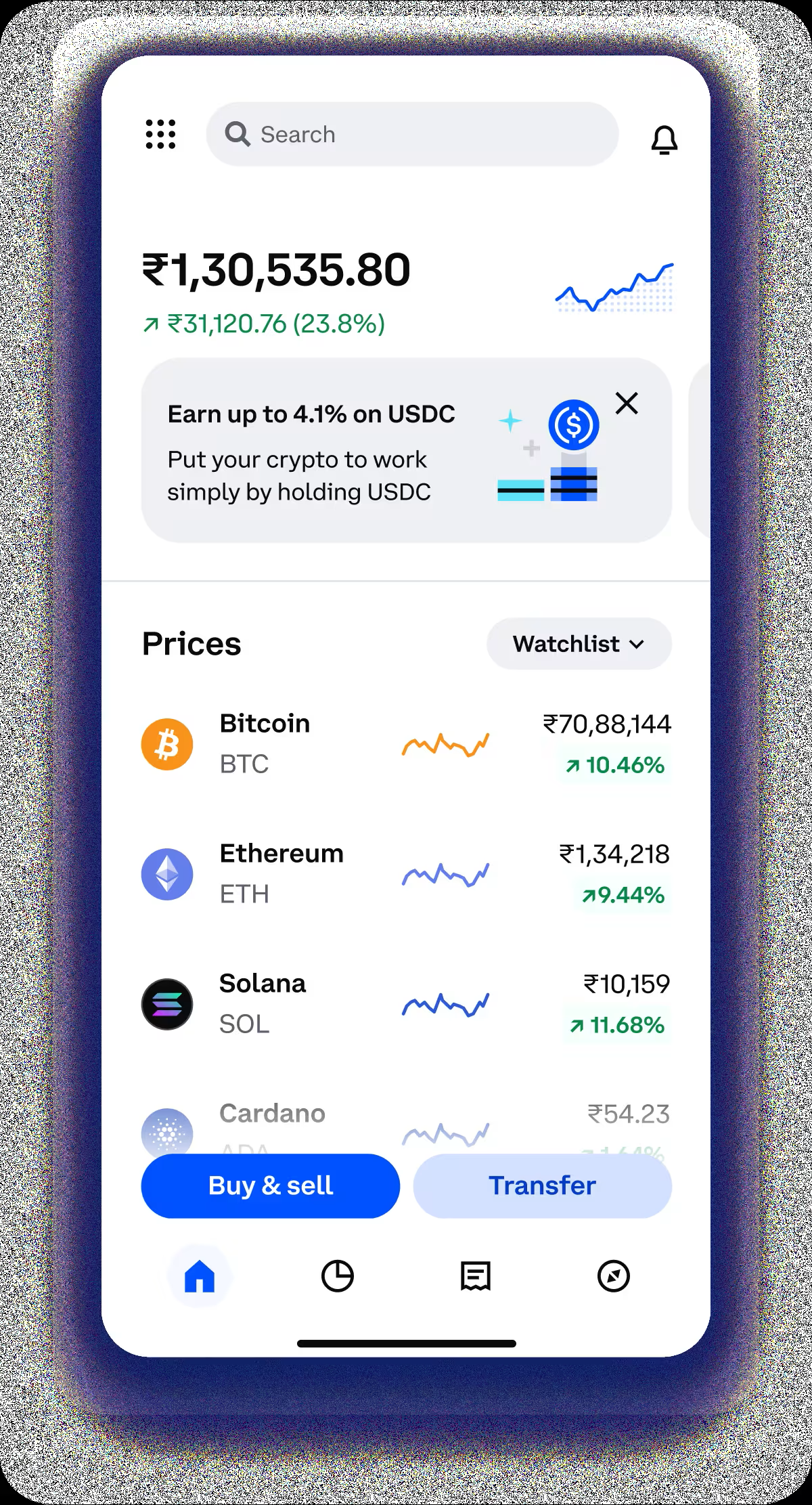 With Coinbase, you can confidently buy, sell, convert, and store major digital assets like Bitcoin and Ethereum. Built on strict regulatory compliance and advanced security, including cold storage for most assets, Coinbase gives you the tools, liquidity, and stability needed to manage your portfolio anytime with its powerful mobile app.
